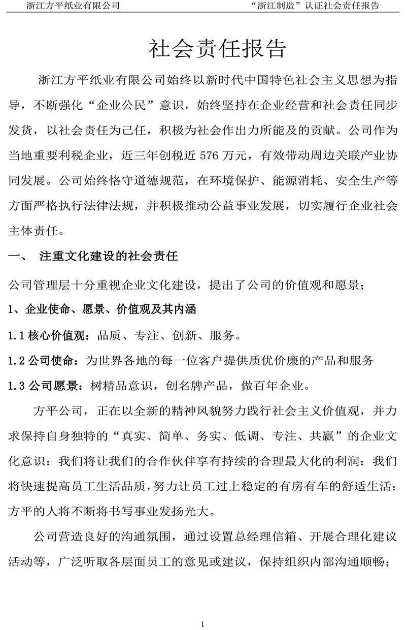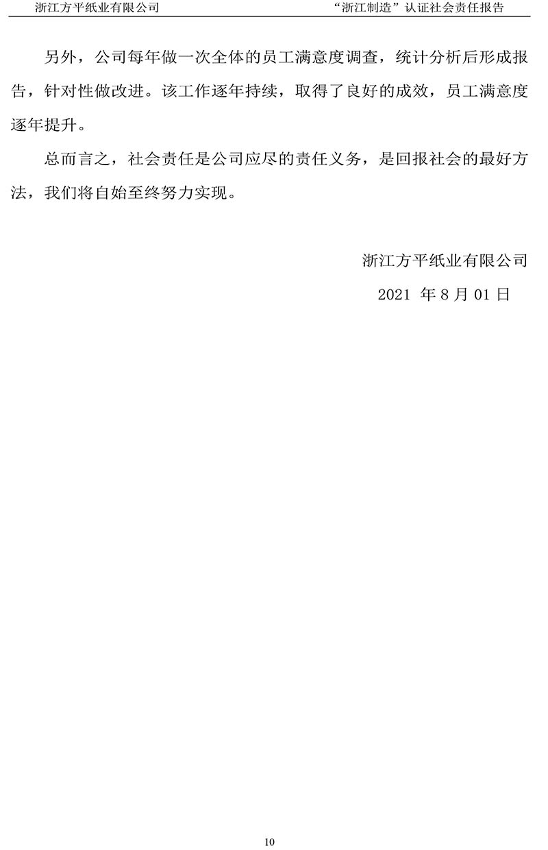 上一篇:浙江方平紙業有限公司質量誠信報告